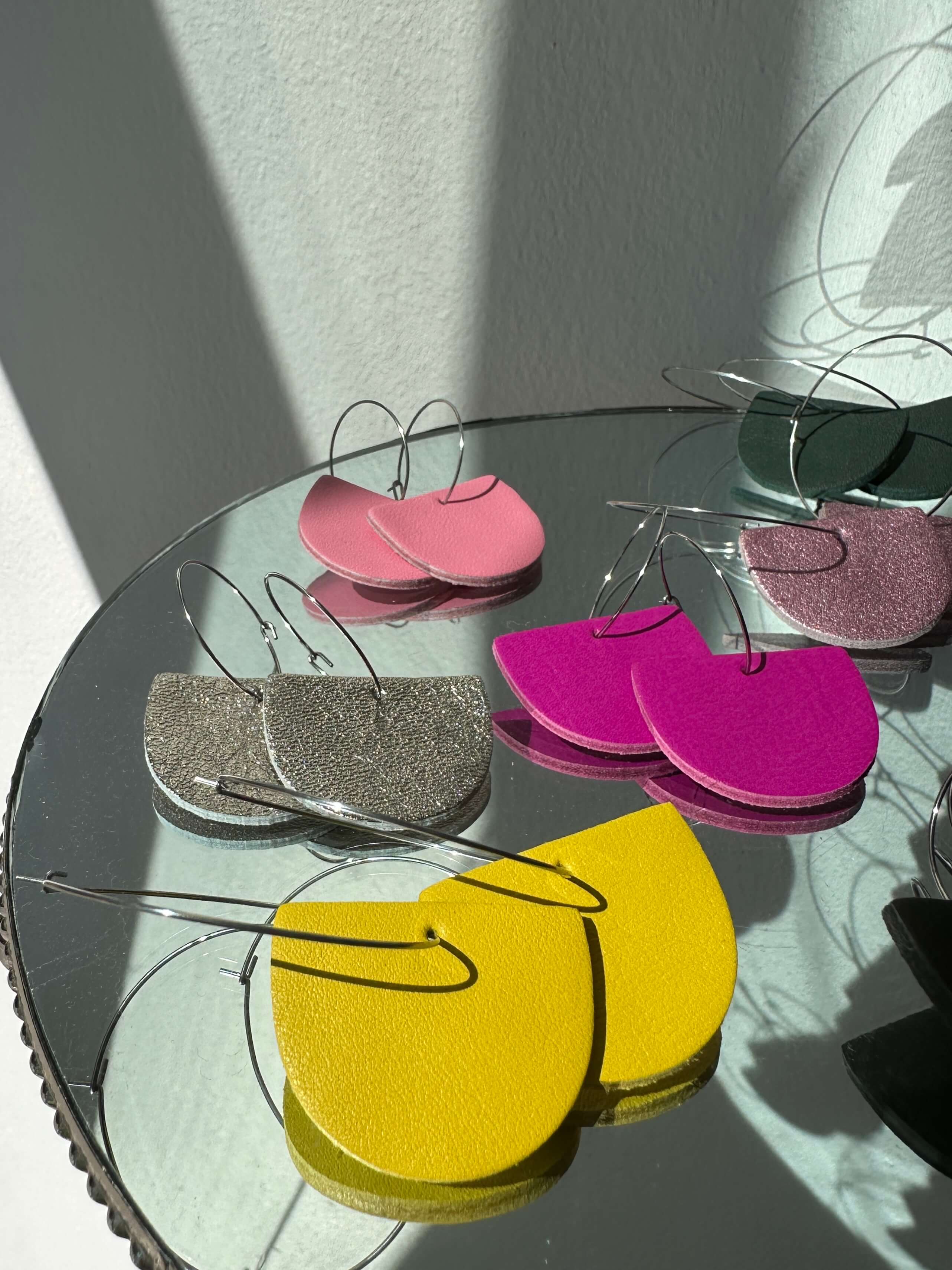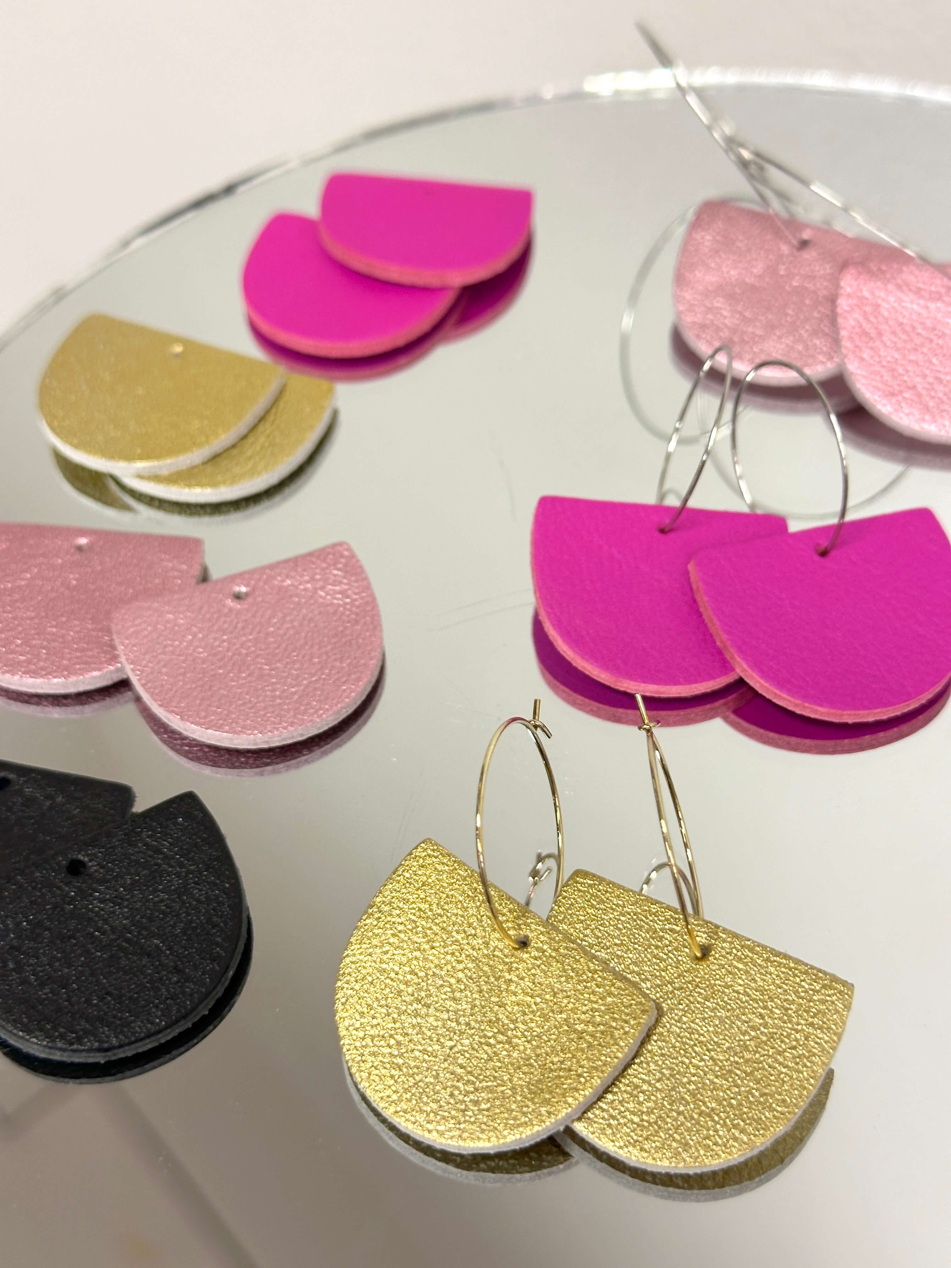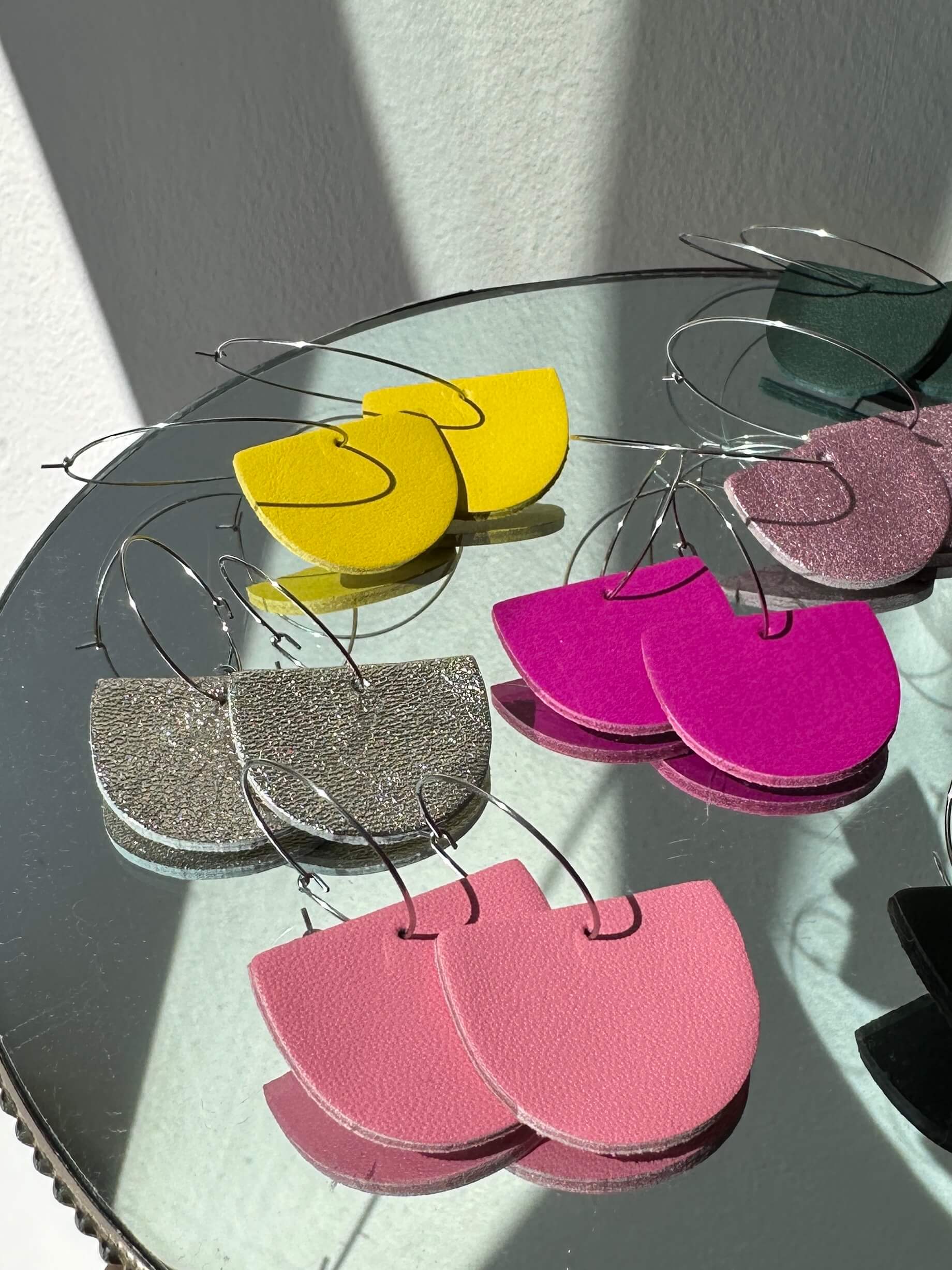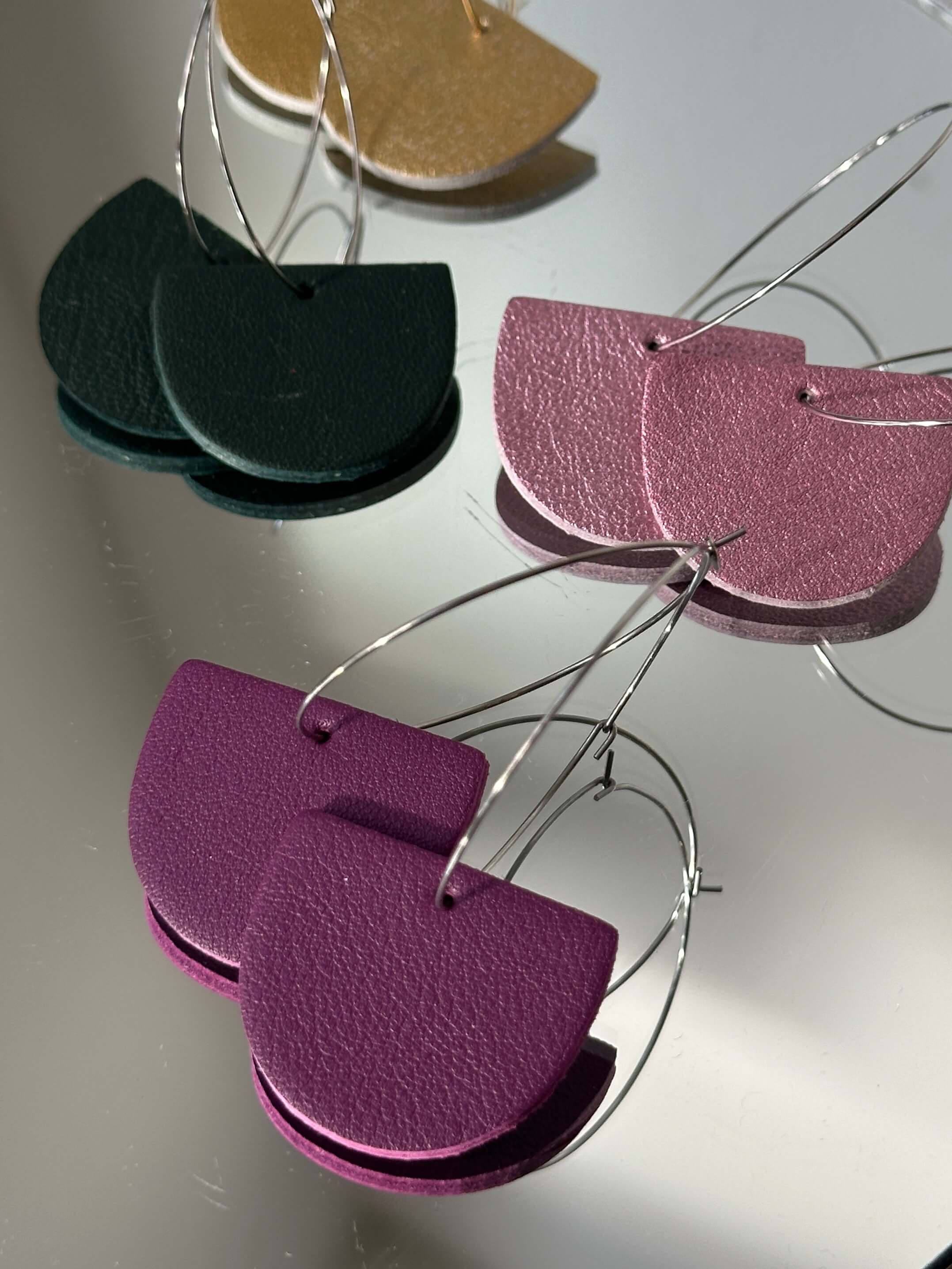 Mix & match - valitse sinulle mieluisin renkaan koko ja väri. Voit ostaa halutessasi extra parin nahkaosia eri värisenä (9€), ja vaihdella korvisten väriä renkaissa asun mukaan!
