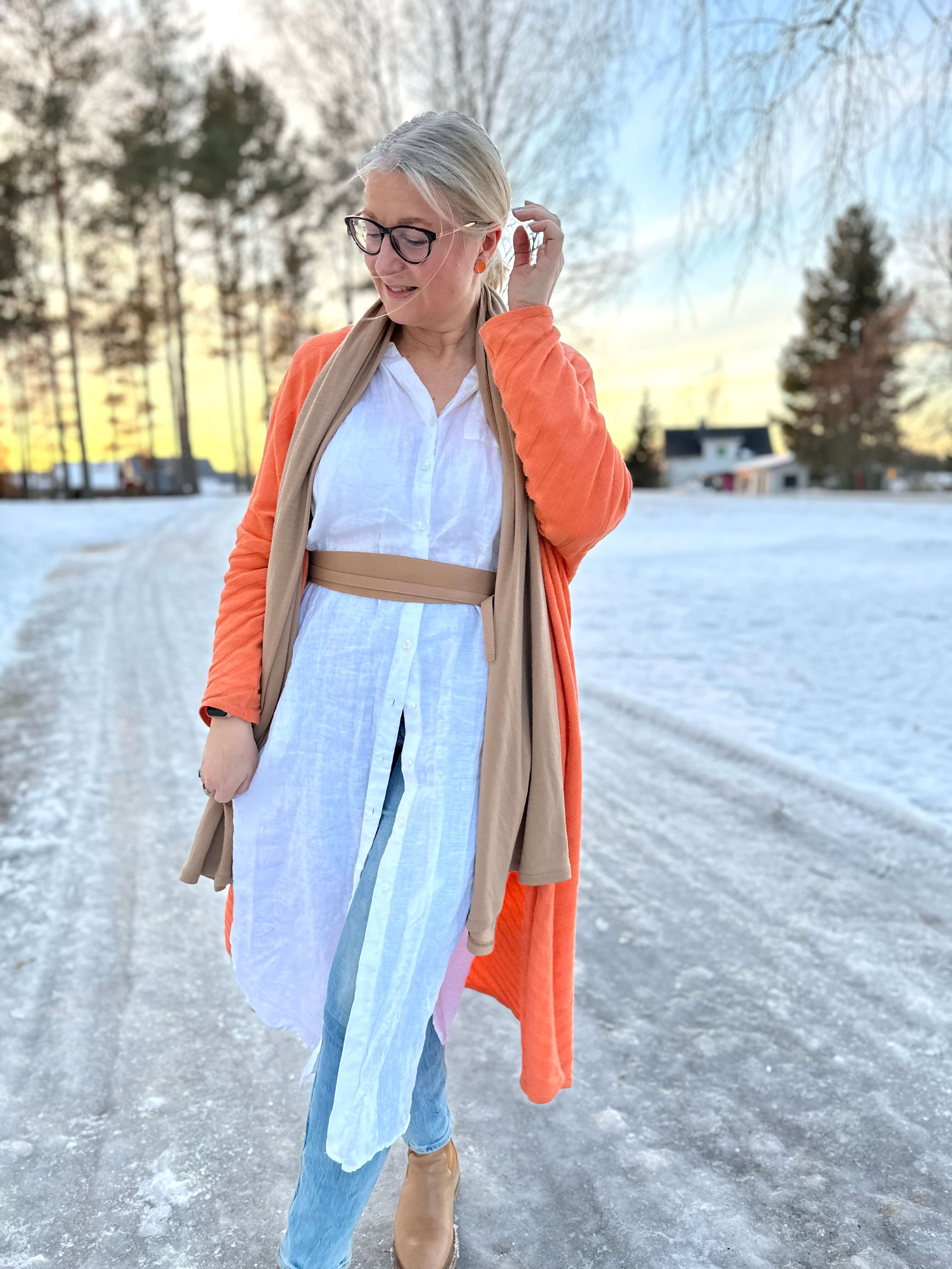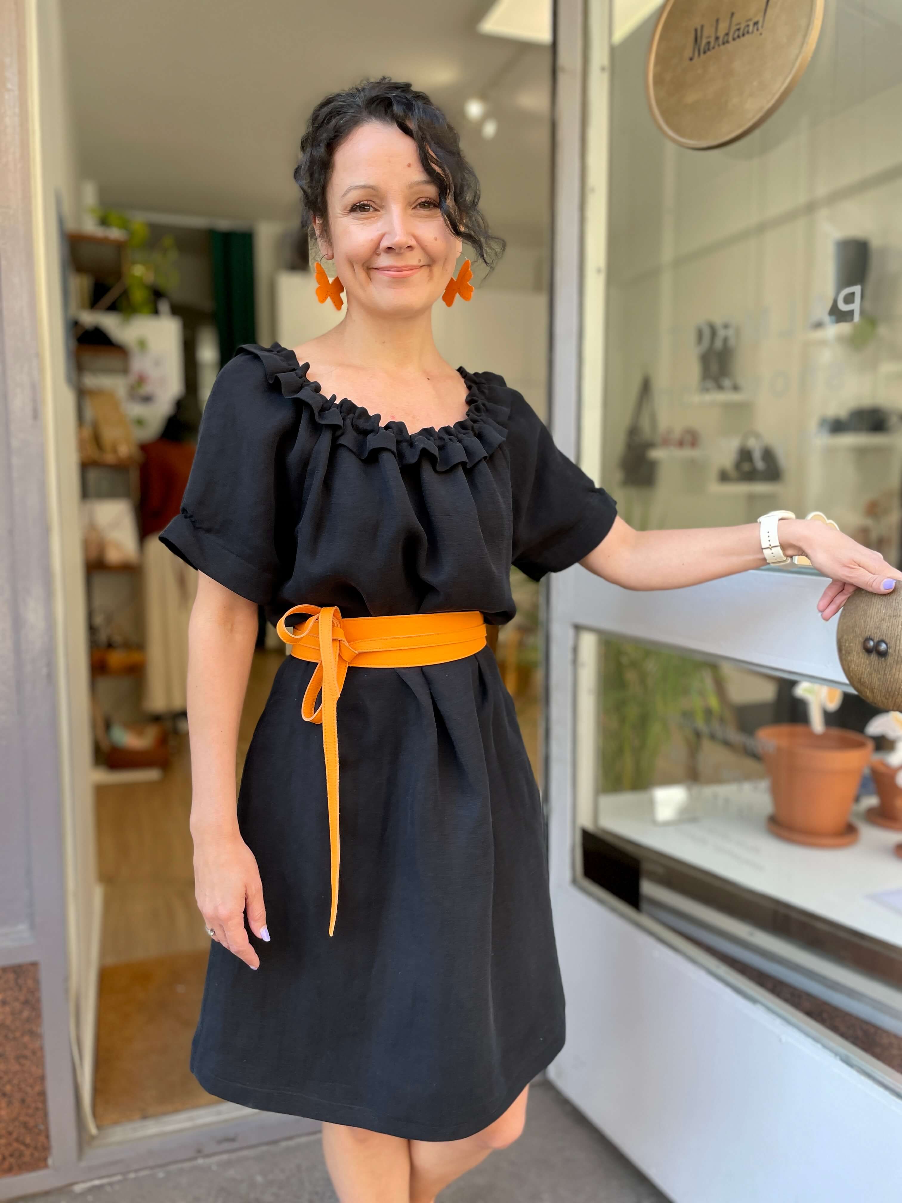 Tyylikäs edestä leveämpi kietaisuvyö on upea asujen viimeistelijä. Vyössä on kauniisti kapenevat nauhat, ja se on mallinsa ansiosta helppo pukea erilaisiin setteihin. Kietaisuvyö on 6cm leveimmillään, ja se sopii niin mekkojen, tunikoiden, hameiden kuin housujen kaveriksi. Vyö kiedotaan väljästi kahdesti vartalon ympäri, ja voit solmia sen usealla eri tavalla.