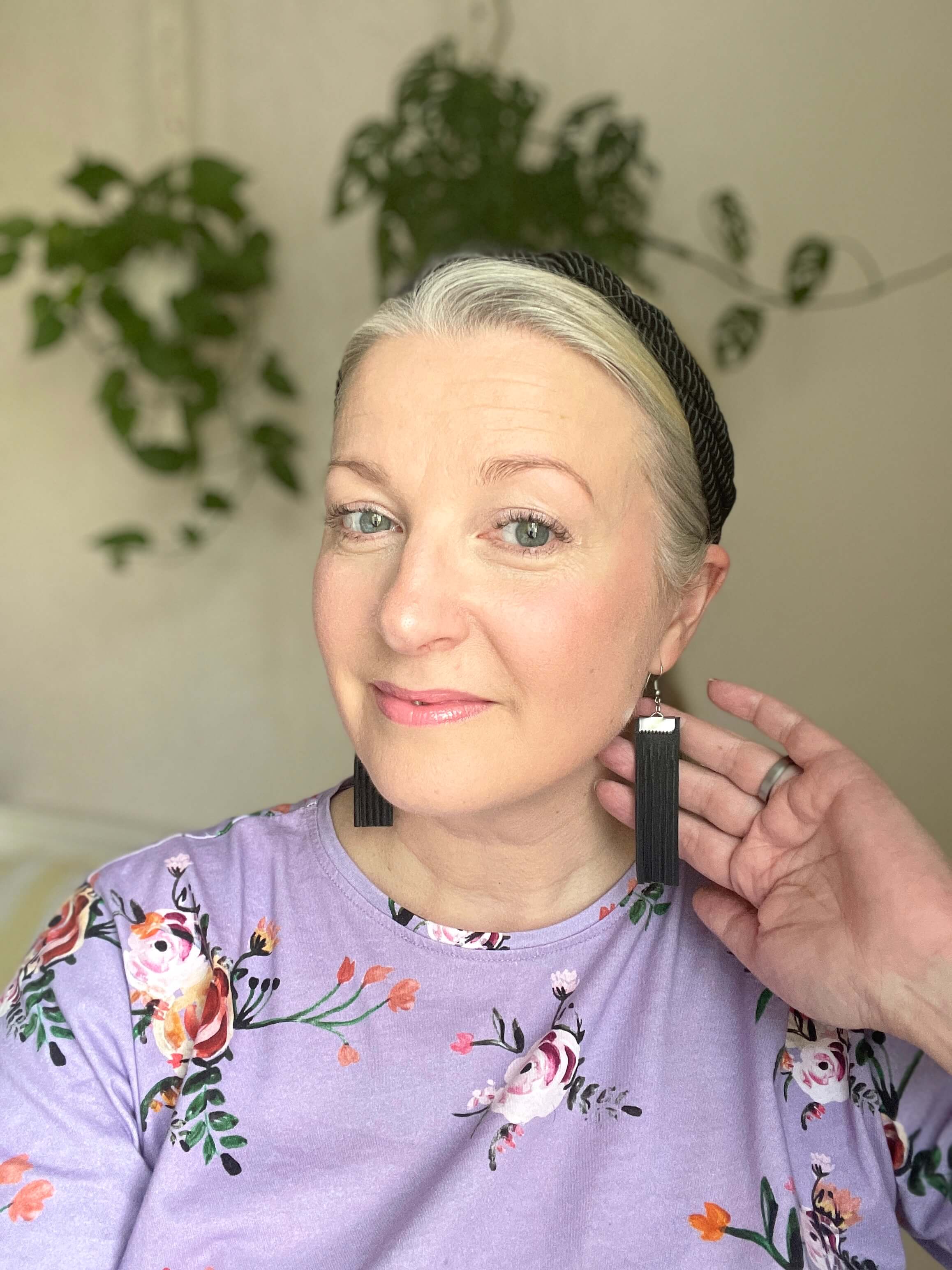 Toivottu Lyylin pikkusisko Tyyne! Minimalistiset, kevyet ja moneen asuun sopivat Tyyne korvikset ovat kaksinkertaista nahkaa, ja ne kestävät käyttöä pysyen kauniisti mallissaan. Korvakorujen materiaali on vöiden ylijäämänahkaa - Tyynet mätsäävät täydellisesti Kiedon vöihin ja muihin koruihin. Tyyne korvakorut ovat koukkukiinnityksellä, koukut pysyvät hyvin paikoillaan mukana olevilla silikonitaustoilla. Korun kokonaiskorkeus on n. 9cm. Korvisten suojana on ainutlaatuinen, Suomessa valmistettu biohajoava korulaatikko.