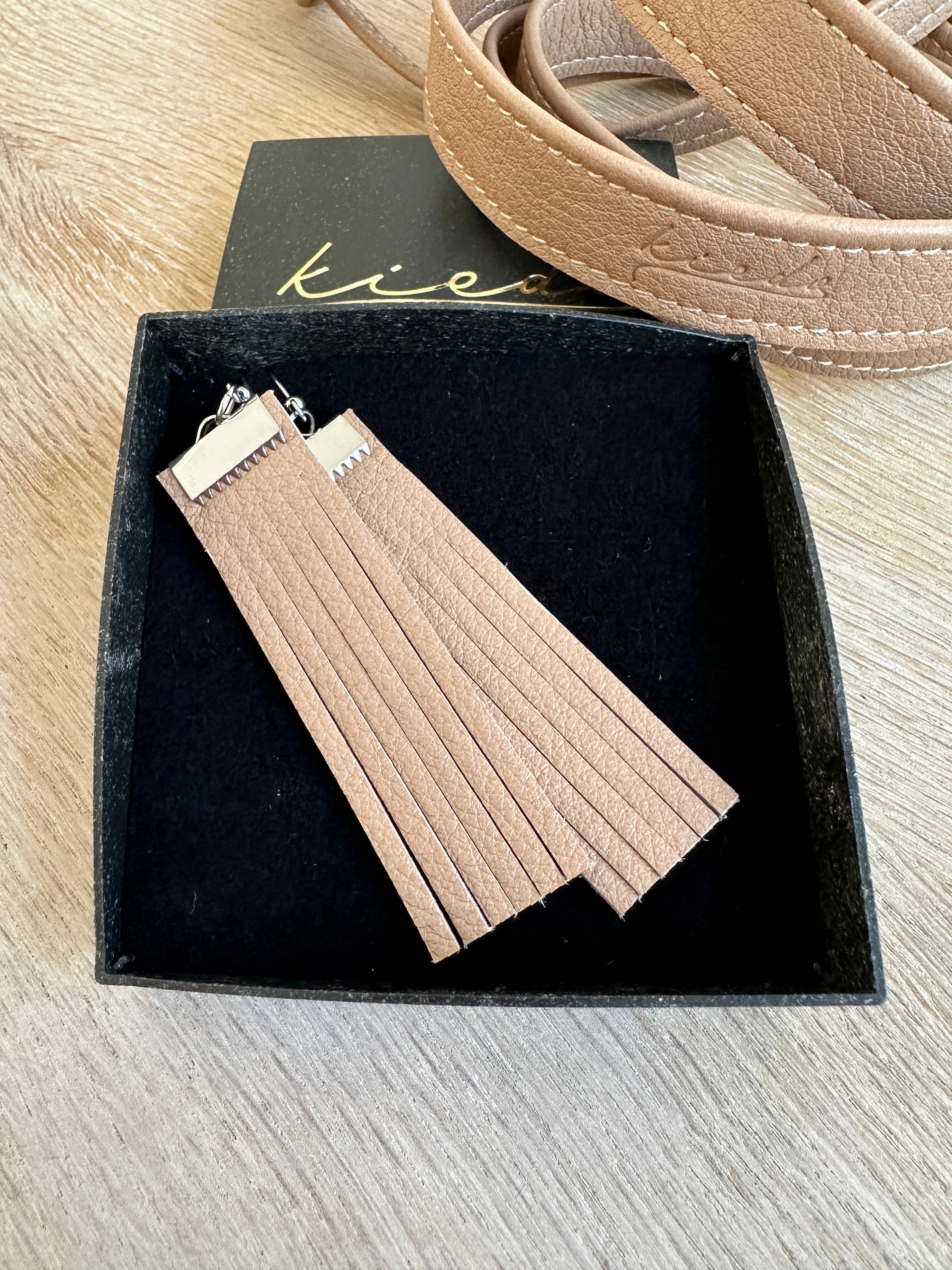 Materiaali: Korvakorujen nahka on Kiedo vöiden leikkuun ylijäämänahkaa. Metalliosat ruostumatonta terästä.